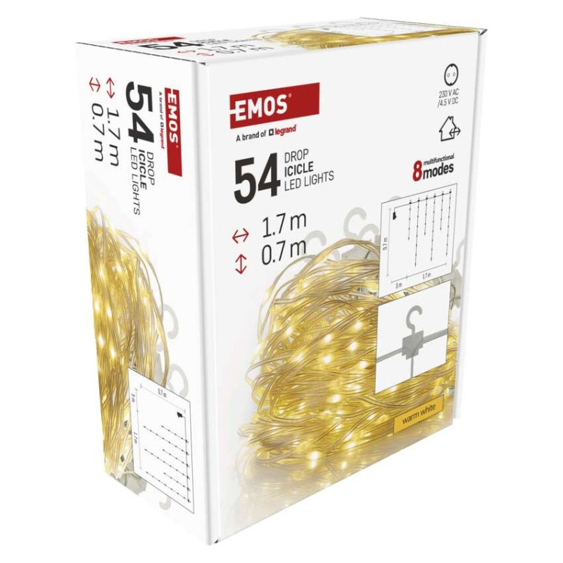 LED vianočná drop reťaz – cencúle, 1,7 m, vonkajšia aj vnútorná, teplá biela, programy