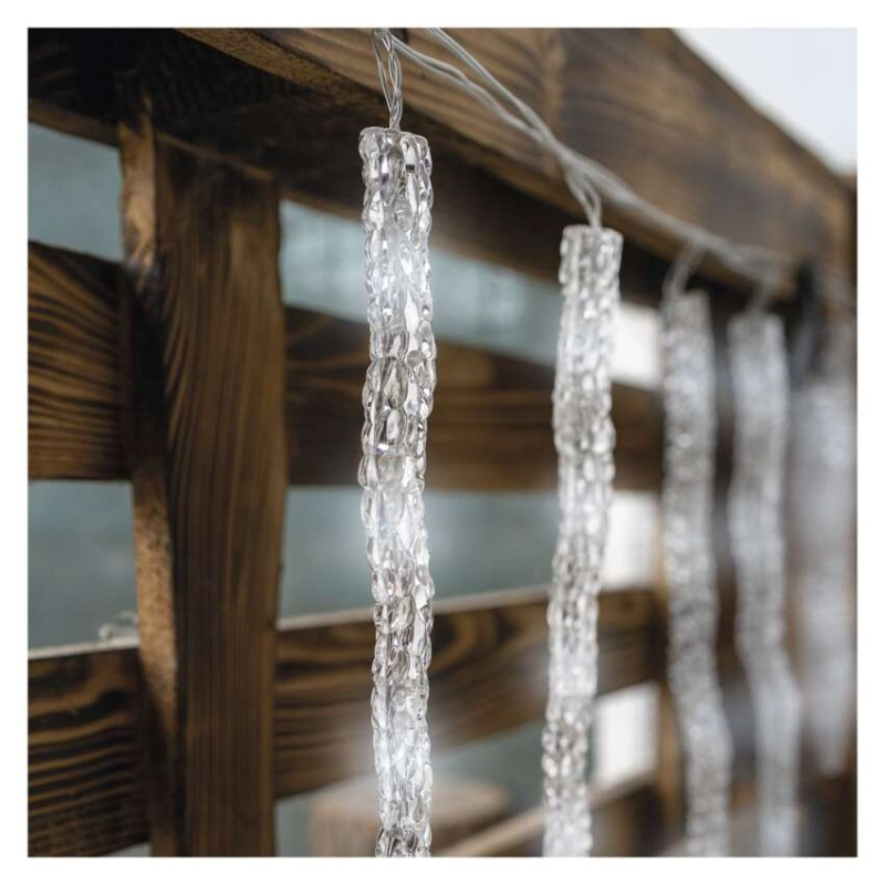 LED vianočná girlanda – cencúle, 12 ks, 3,6 m, vonk. a vnút., studená biela