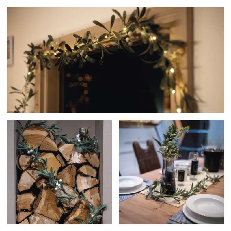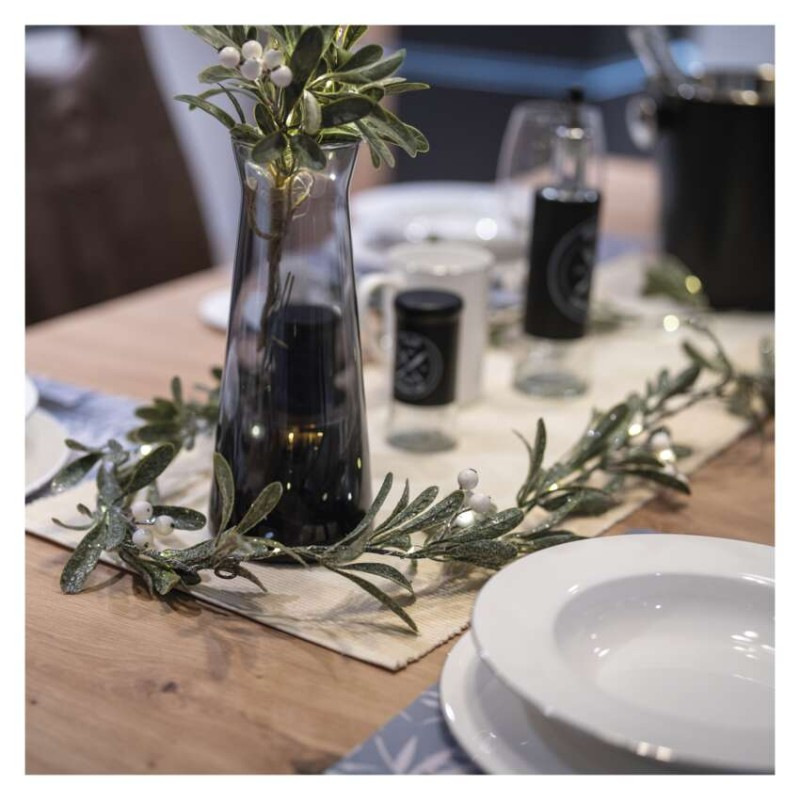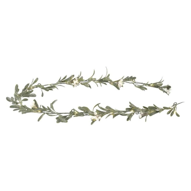 LED vianočná girlanda - jmelí, 1,5 m, 3x AA, vnútorné, teplá biela, časovač