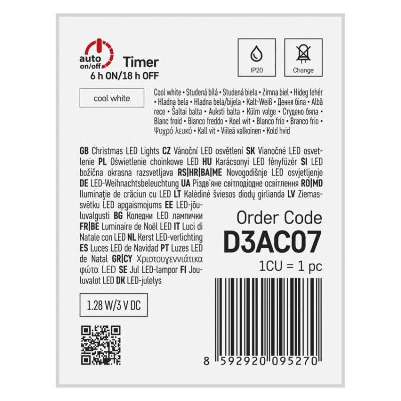 LED vianočná nano reťaz, 1,9 m, 2x AA, vnútorná, studená biela, časovač