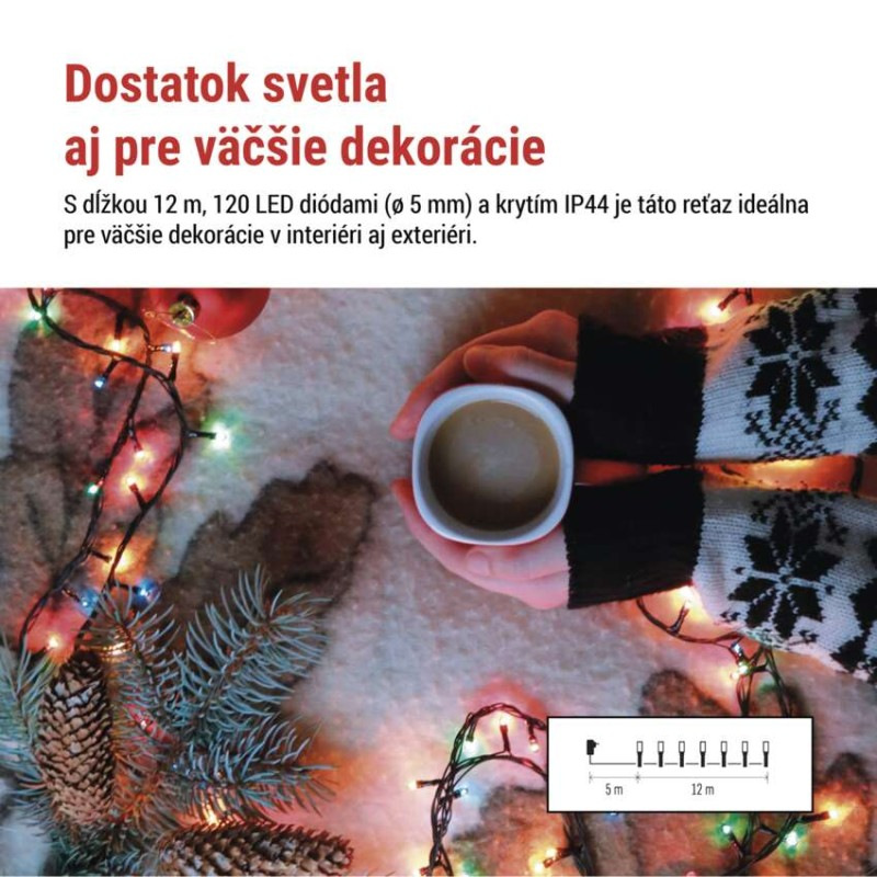 LED vianočná reťaz, 12 m, vonkajšia aj vnútorná, multicolor, programy, časovač