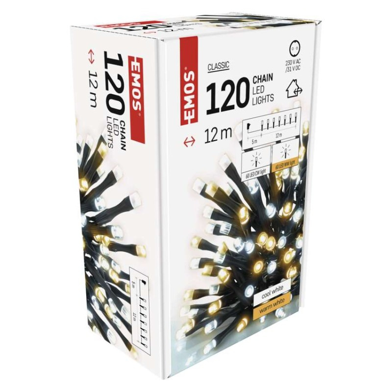 LED vianočná reťaz, 12 m, vonkajšia aj vnútorná, teplá/studená biela, časovač