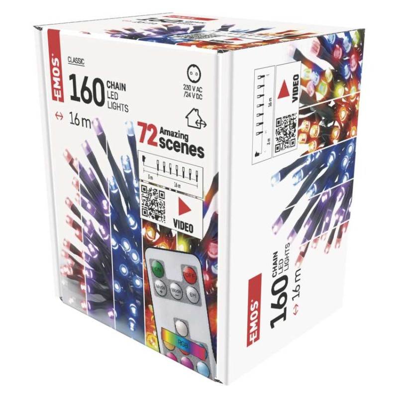 LED vianočná reťaz, 16 m, vonkajšia aj vnútorná, RGB, ovládač, programy, časovač