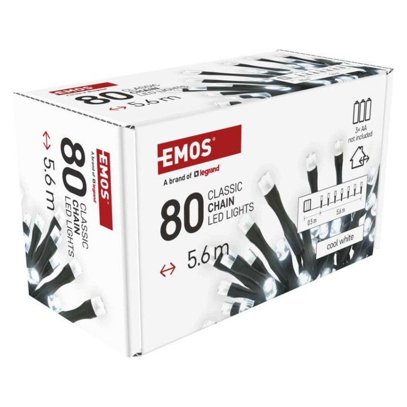 LED vianočná reťaz, 5,6 m, 3x AA, vonkajšia aj vnútorná, studená biela, časovač