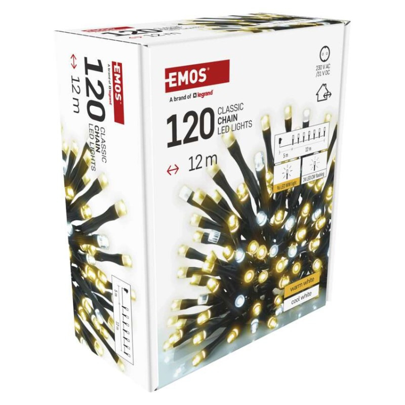 LED vianočná reťaz blikajúca, 12 m, vonkajšia aj vnútorná, teplá/studená biela, časovač