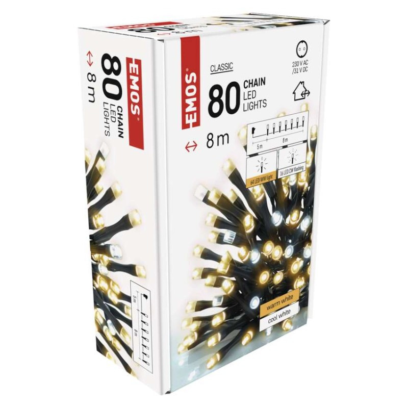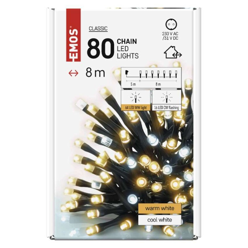 LED vianočná reťaz blikajúca, 8 m, vonkajšia aj vnútorná, teplá/studená biela, časovač