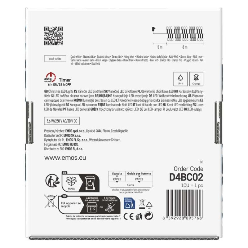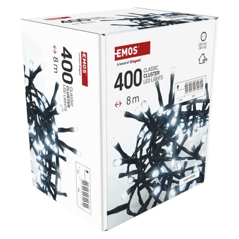 LED vianočná reťaz – cluster, 8 m, vonkajšia aj vnútorná, studená biela, časovač