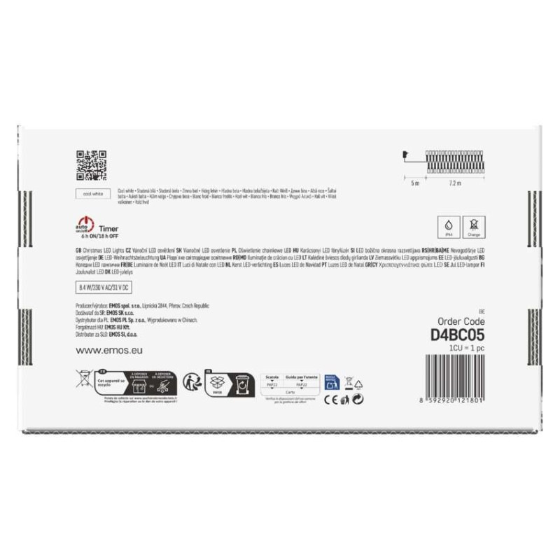 LED vianočná reťaz – ježko, 7,2 m, vonkajšia aj vnútorná, studená biela, programy, časovač