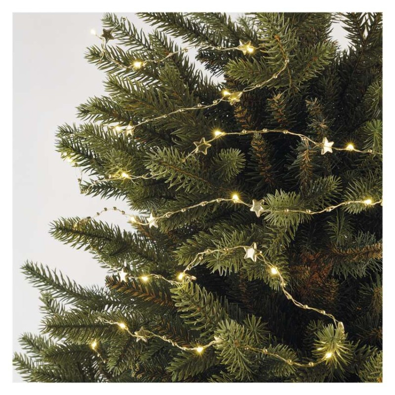 LED vianočná reťaz zlatá – hviezdičky, 1,9 m, 2x AA, vnútorný, teplá biela, časovač