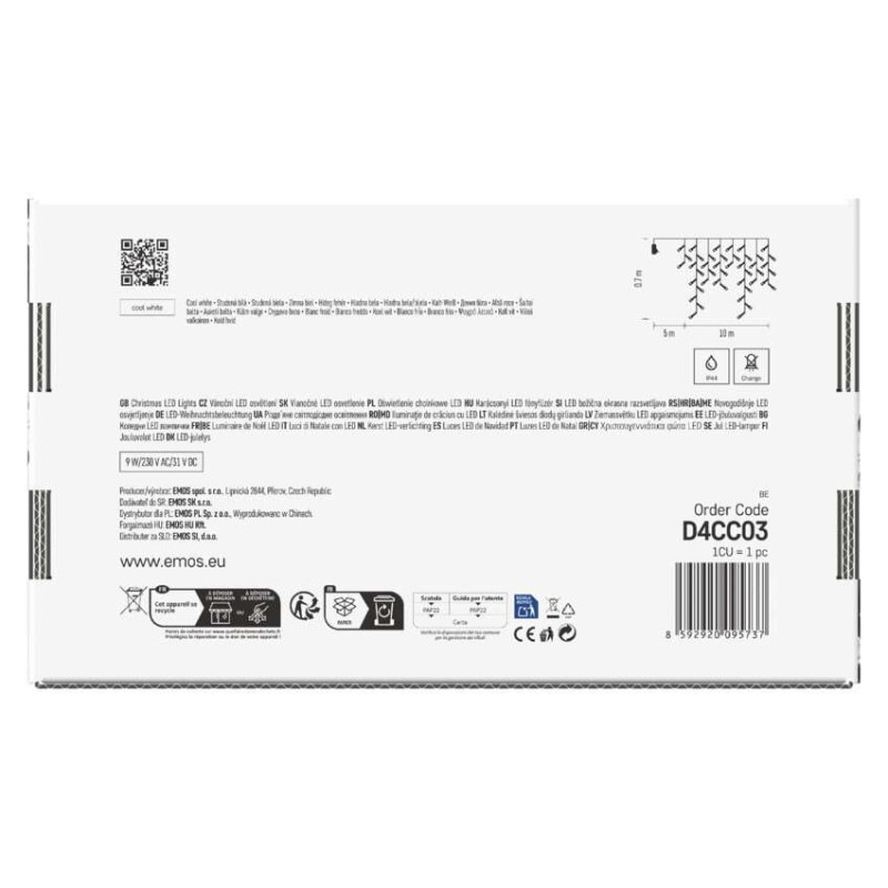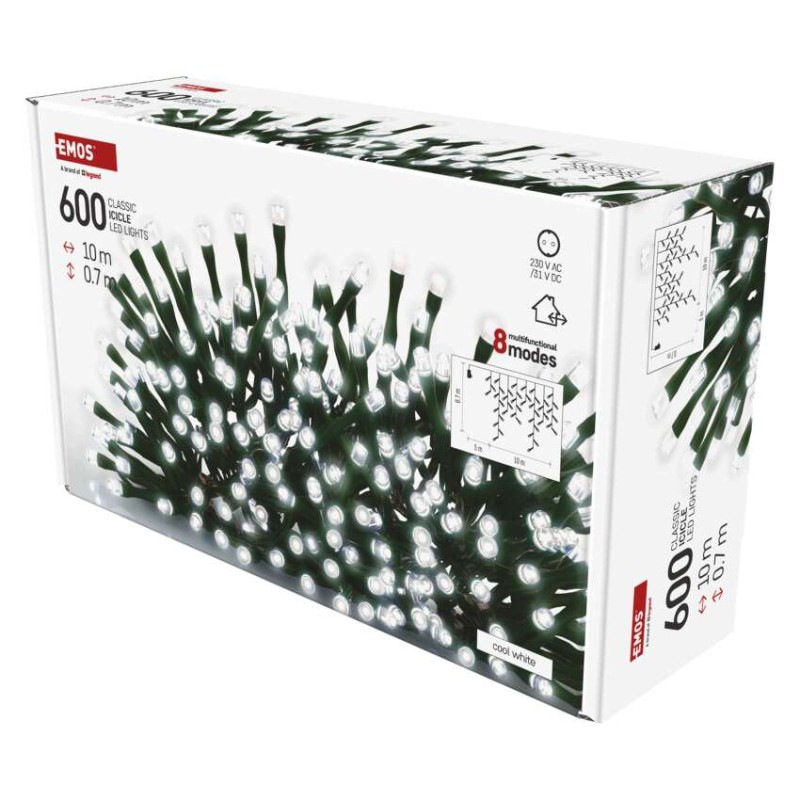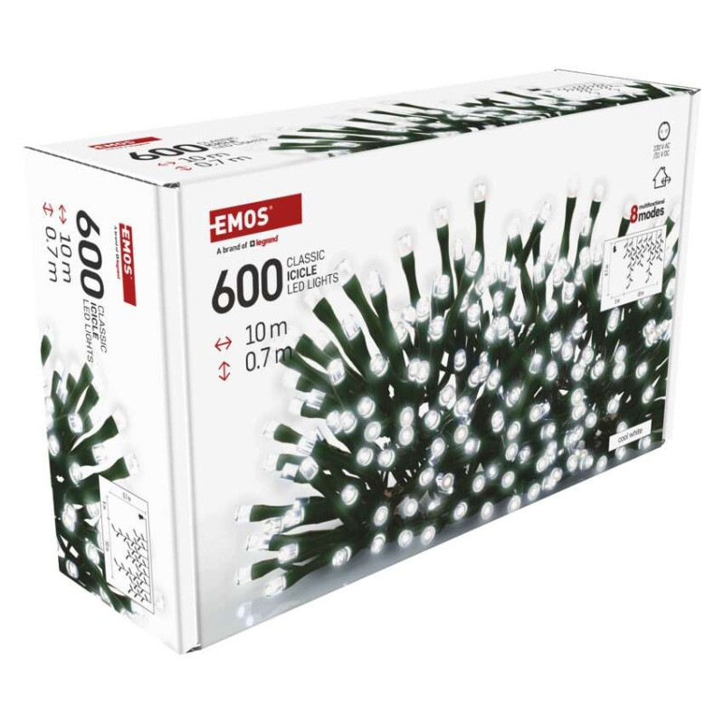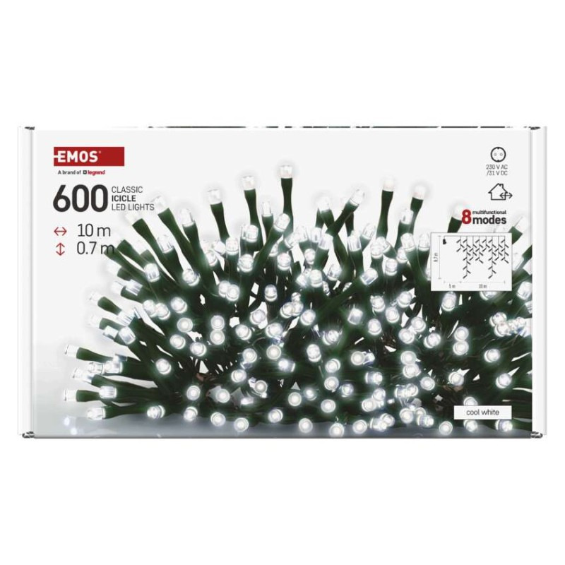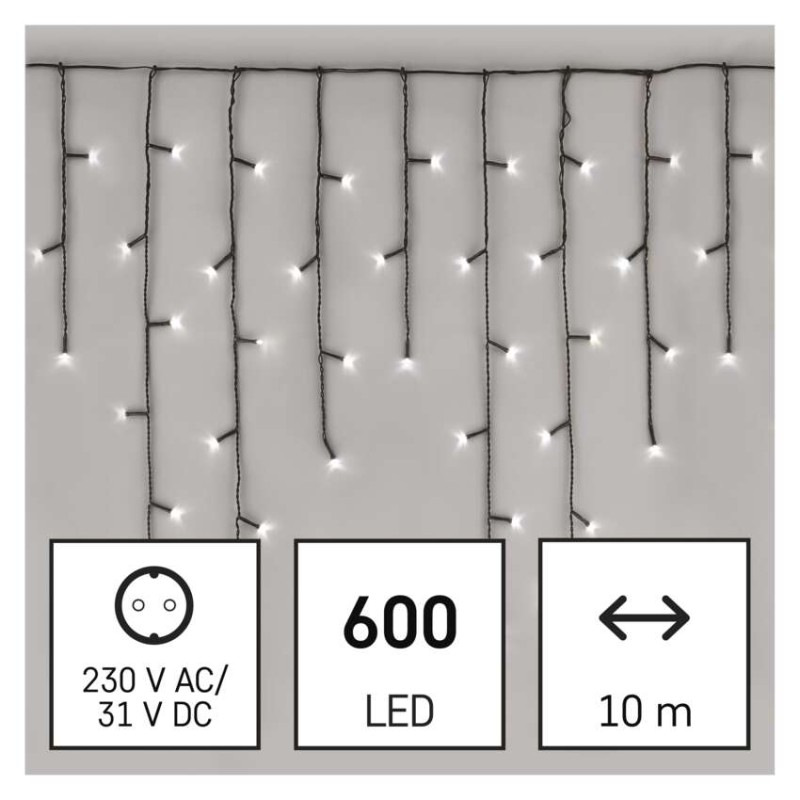 LED vianočné cencúle, 10 m, vonkajšie aj vnútorné, studená biela, programy