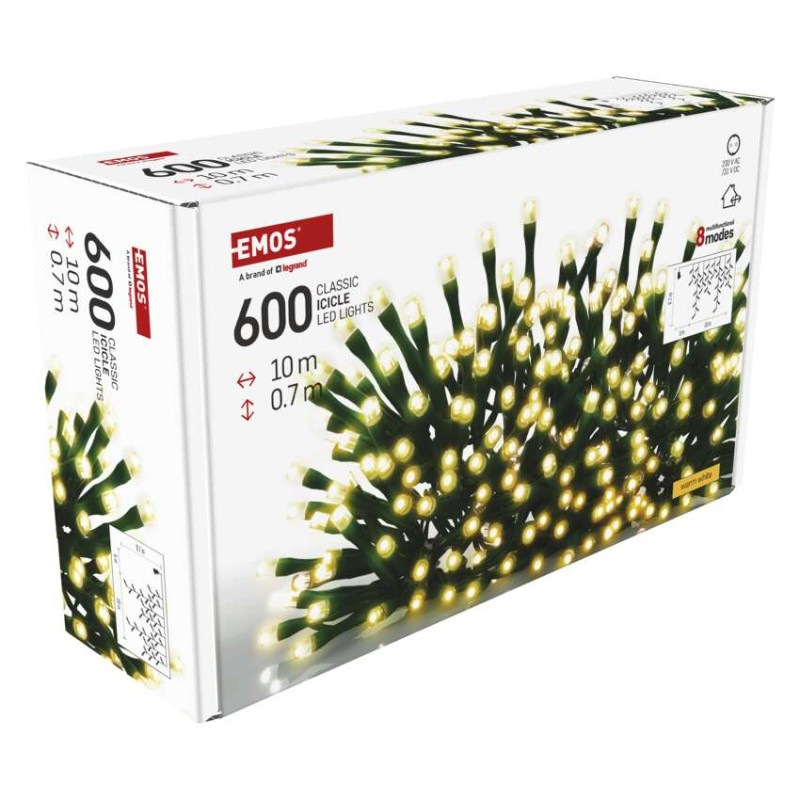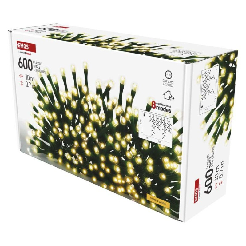 LED vianočné cencúle, 10 m, vonkajšie aj vnútorné, teplá biela, programy