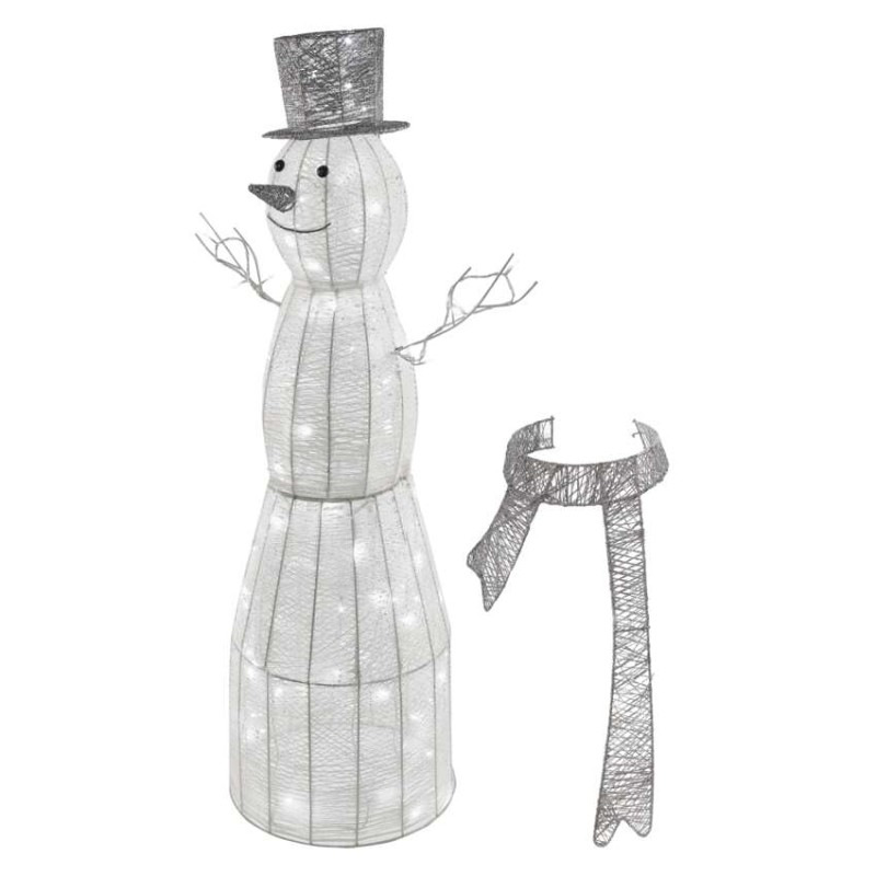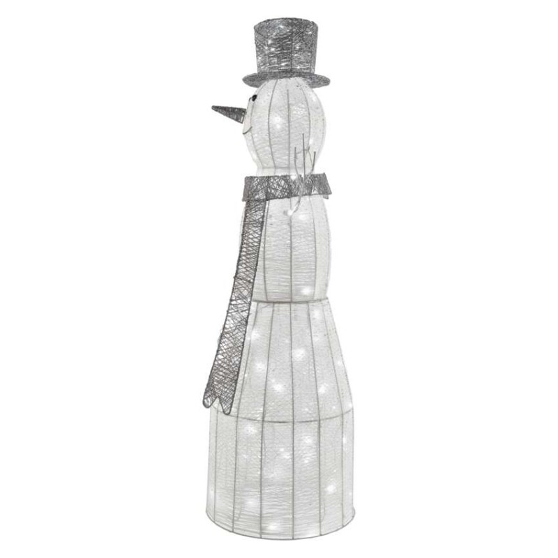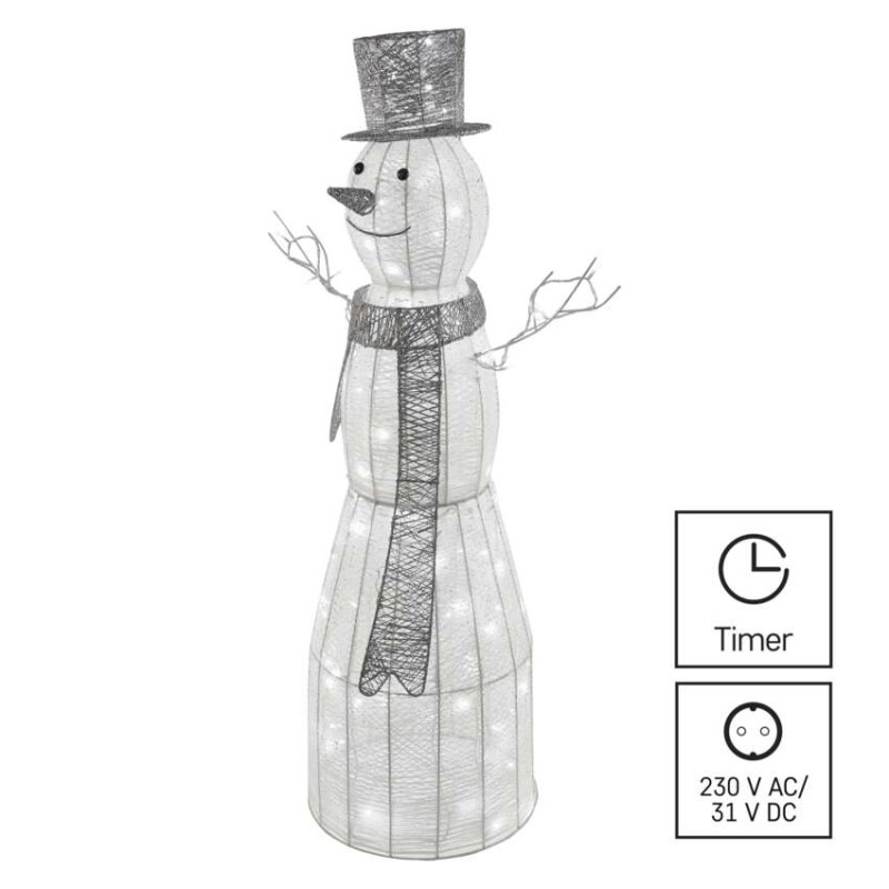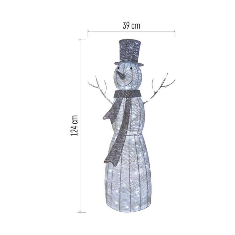 LED vianočný snehuliak ratanový, 124 cm, vnútorný, studená biela, časovač