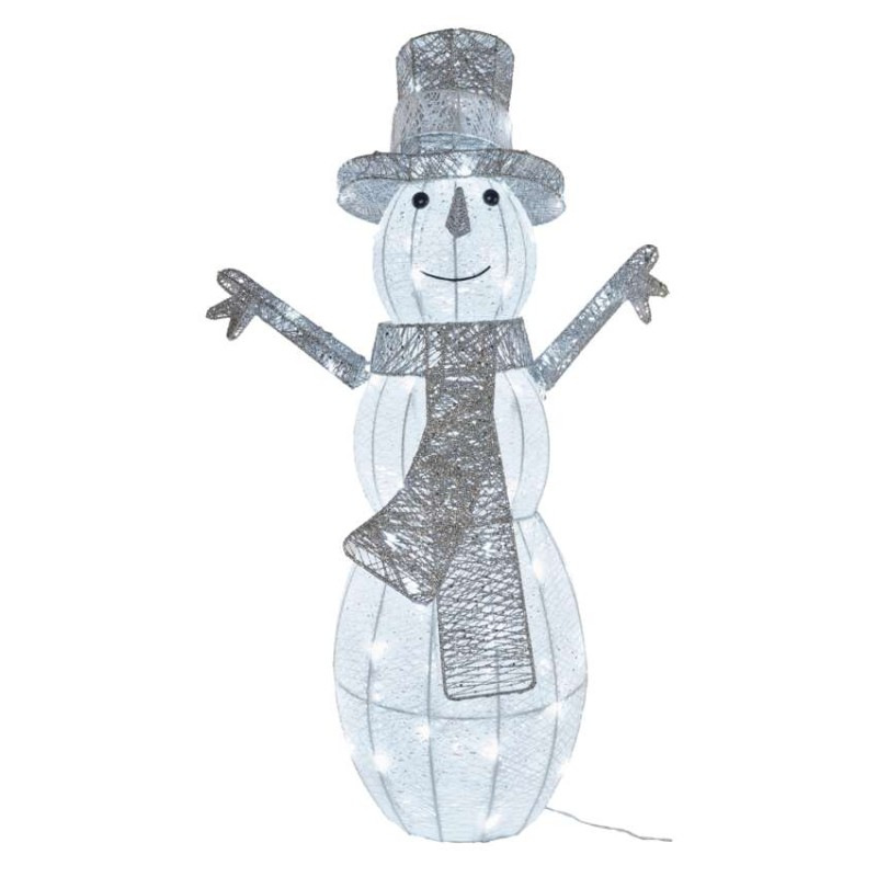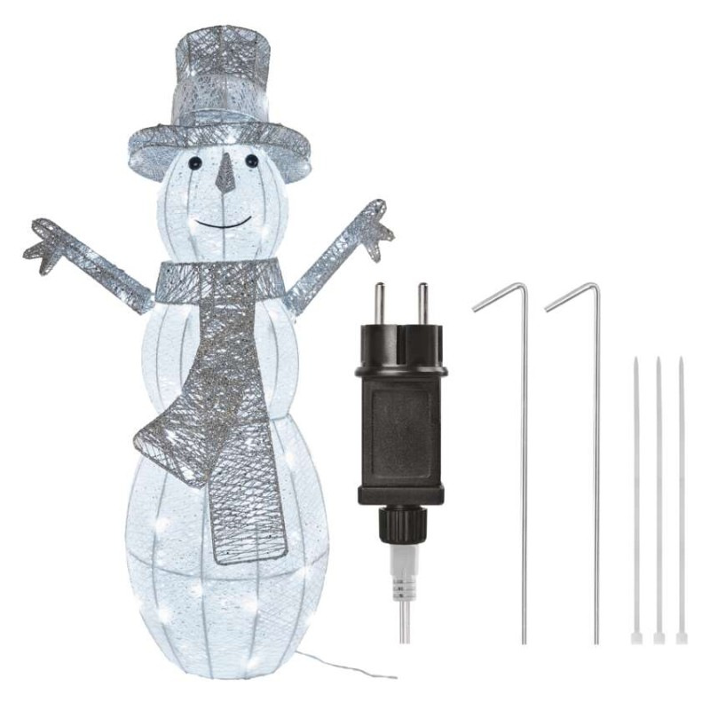 LED vianočný snehuliak ratanový, 82 cm, vonk./vnút., studená biela, časovač