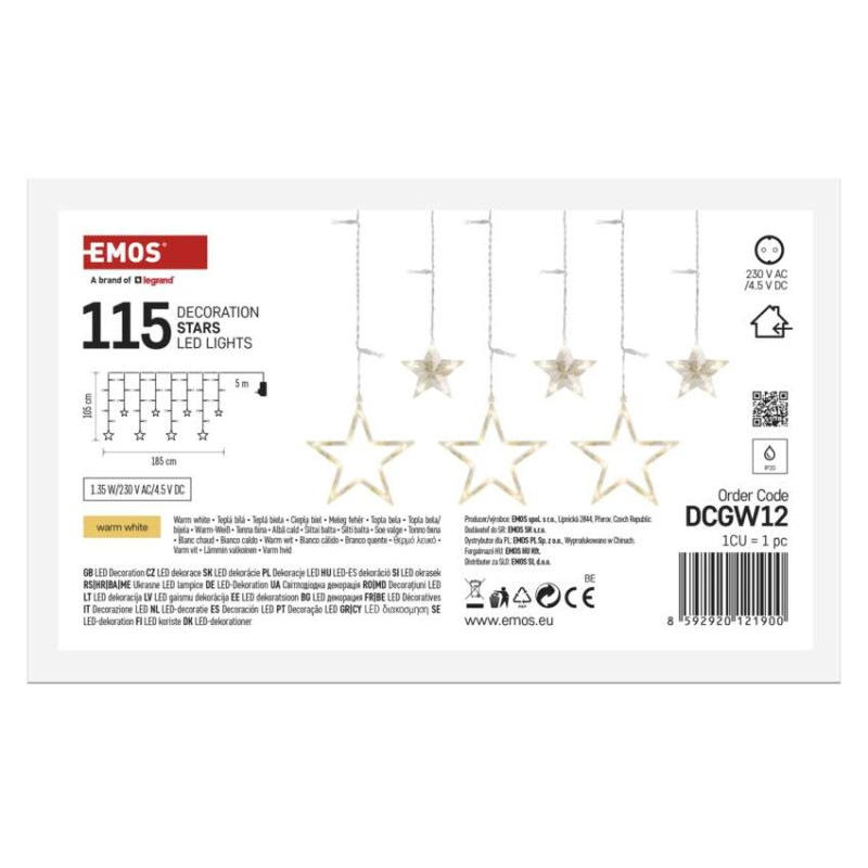 LED vianočný záves – hviezdy, 185x105 cm, vnútorný, teplá biela