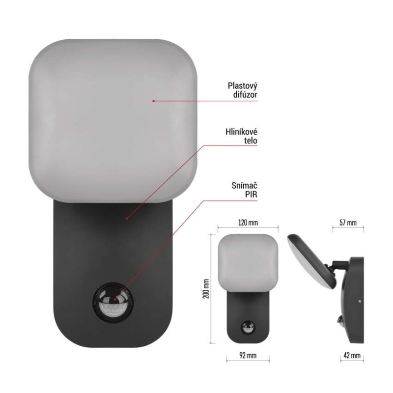 LED záhradné nástenné svietidlo NIKA, senzor súmraku, 12 x 12 x 20 cm, 12,8 W, teplá biela