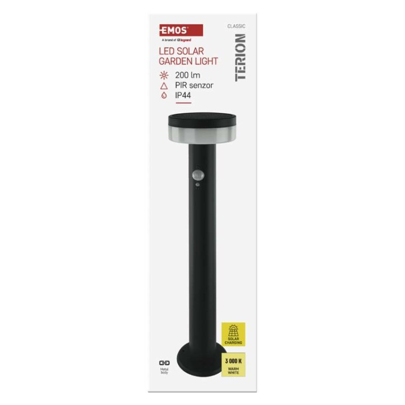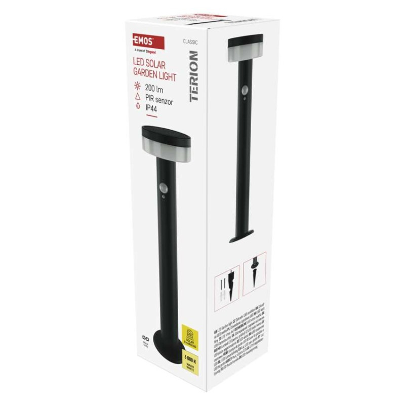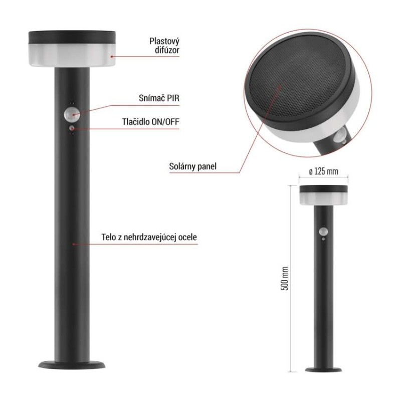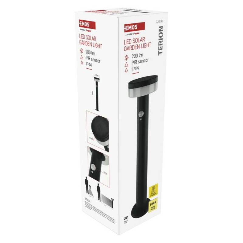 LED záhradné solárne stĺpikové svietidlo TERION, senzor súmraku, 12,5 x 12,5 x 50 cm