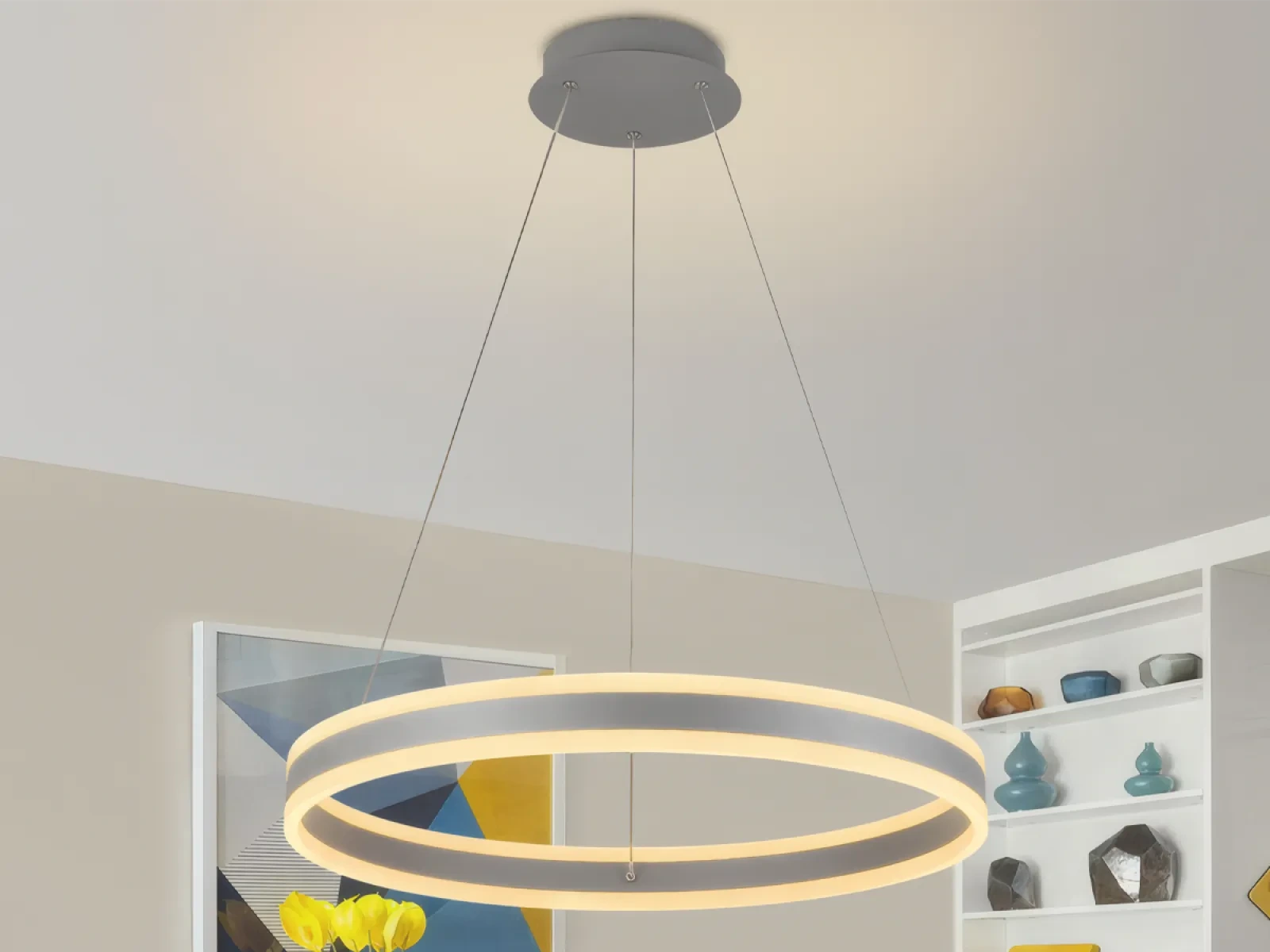 LED dizajnové závesné svietidlo s diaľkovým ovládačom RF 2,4GHz značky NEDES, je lampa vhodná do kuchyne, jedálne, spálne, chodby alebo obývačky. Tieto svietidlá vynikajúco kombinujú moderný štýl s najvyššou kvalitou. Svetlá sú ovládané SMART technológiu pomocou aplikácie NEDES Smart.