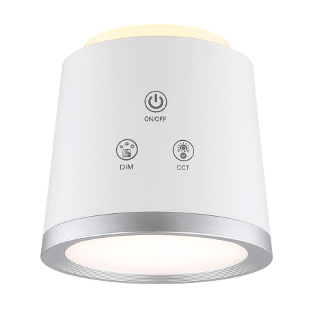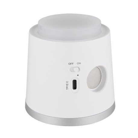Nabíjateľná stolová lampa, hliník/plast biely, satin., strieborný, dotykové zapnutie/vypnutie/plynul