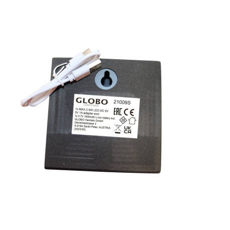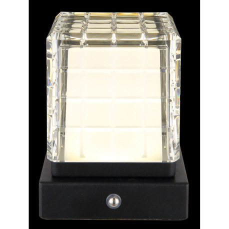 Nabíjateľná stolová lampa, kov čierny, akryl číry, satinovaný povrch, čierny PVC kábel, dotykové zap