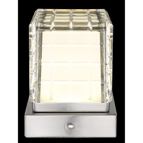Nabíjateľná stolová lampa, kov nikel,akryl číry, satinovaný povrch, biely PVC kábel, dotykové zapnut