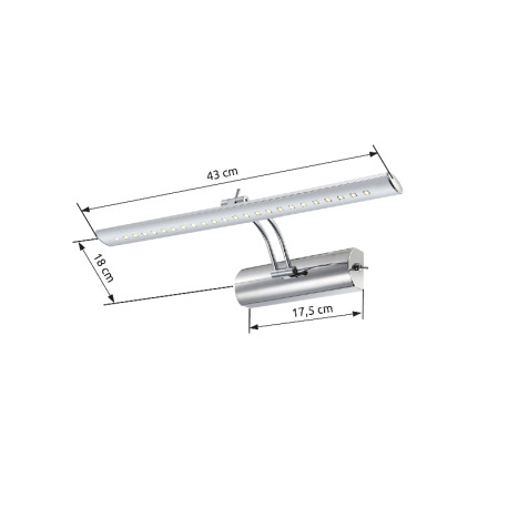 Nástenné svietidlo, chróm, priehľadný akryl, nastaviteľné, vypínač, ŠxV: 430x160, H:180, vrátane 1xL