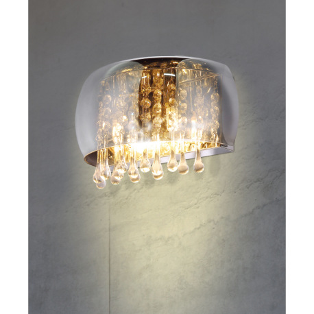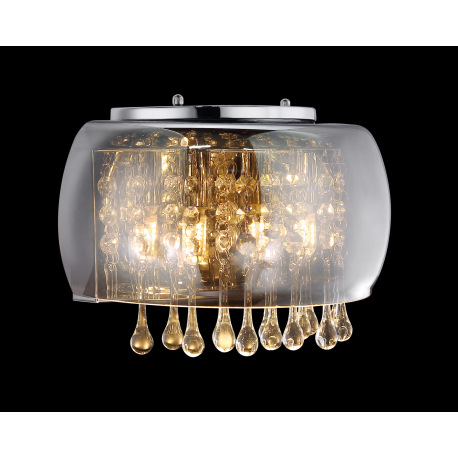 Nástenné svietidlo, chróm, sklo dymové, sklenené krištále priehľadné, ŠxV:280x175, H:145, bez žiarov