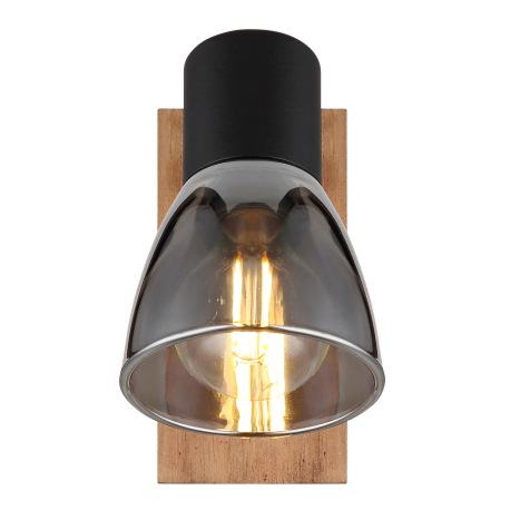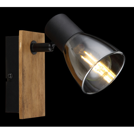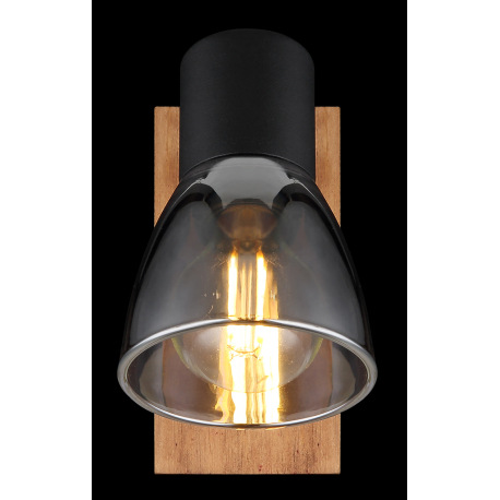 Nástenné svietidlo, drevo hnedé, kov čierny, dymové sklo, s vypínačom, ŠxV:70x140mm, H: 155mm, bez ž