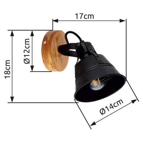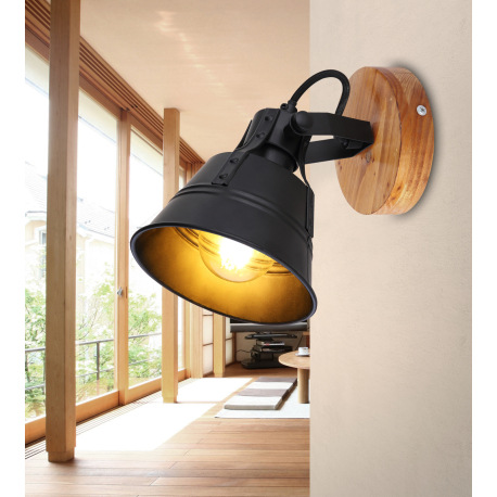 Nástenné svietidlo, drevo hnedé, kov čierny matný, zlatý, drevo dubový vzhľad, ŠxV: 140x180, H: 170,