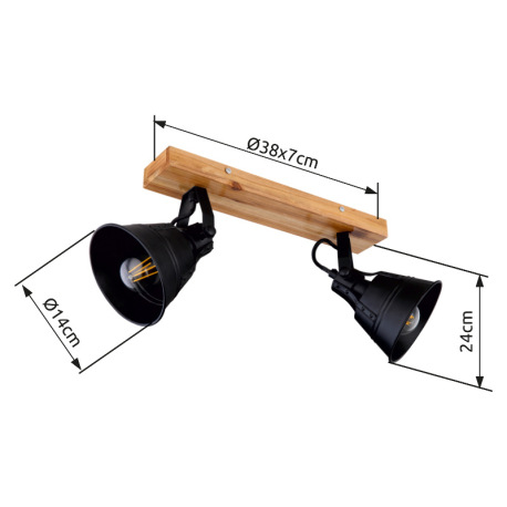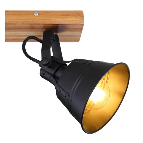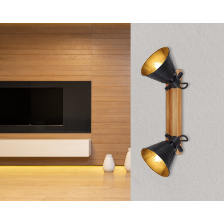 Nástenné svietidlo, drevo hnedé, kov čierny matný, zlatý, drevo dubový vzhľad, ŠxV: 140x380, H: 175,