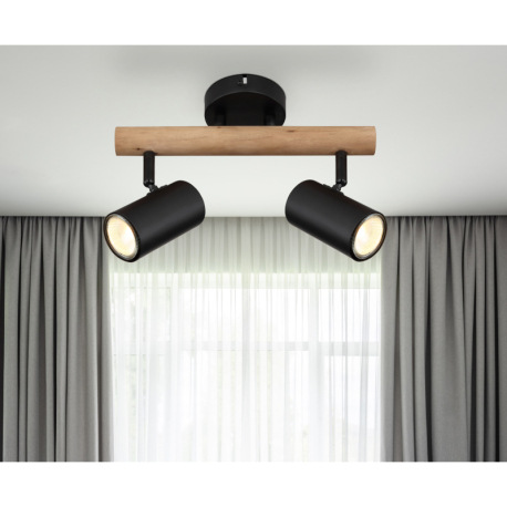 Nástenné svietidlo, drevo tmavohnedé, kov čierny, DxŠxV:340x100x220mm, bez žiaroviek 2x GU10, max. L