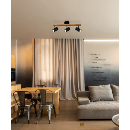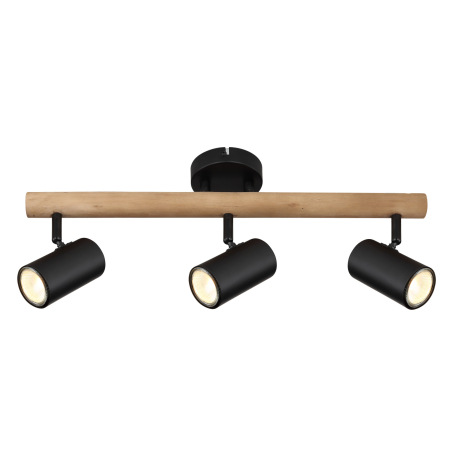 Nástenné svietidlo, drevo tmavohnedé, kov čierny, DxŠxV:570x100x220mm, bez žiaroviek 3x GU10, max. L