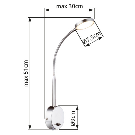 Nástenné svietidlo, hliník, chróm, sklo satinované, kábel 1,5m, vypínač, DxŠxV: 300x90x510, vrátane