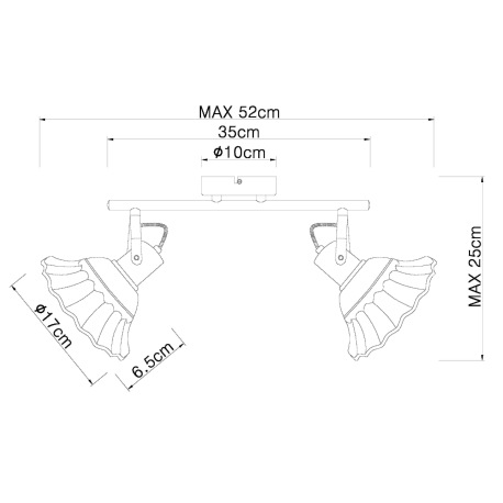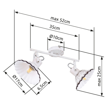 Nástenné svietidlo, kov biely a čierny, keramika biela a čierna, DxV:520x250, bez žiaroviek 2xE27, m