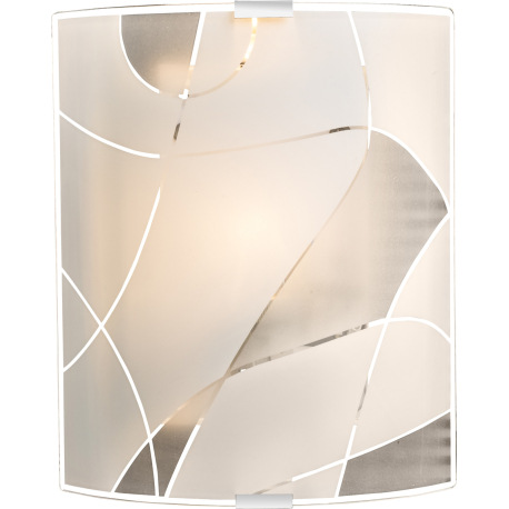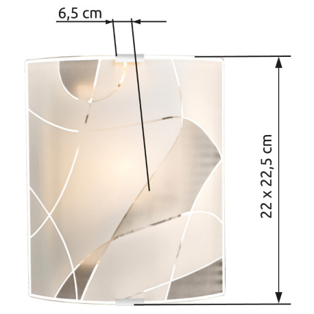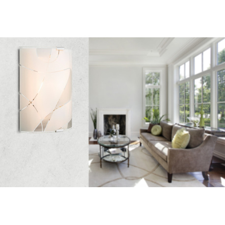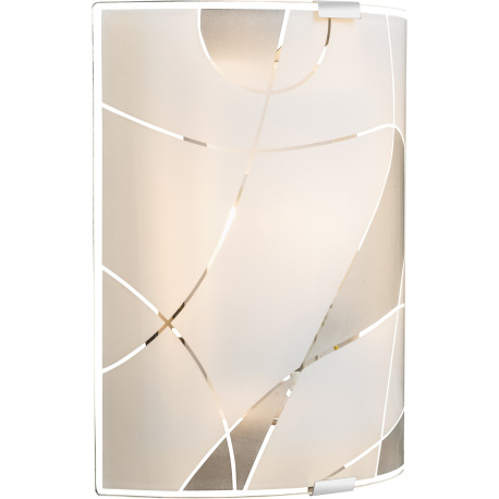 Nástenné svietidlo, kov biely, chróm, satinované sklo, ozdobné linky, DxŠ: 220x225, H: 65, bez žiaro