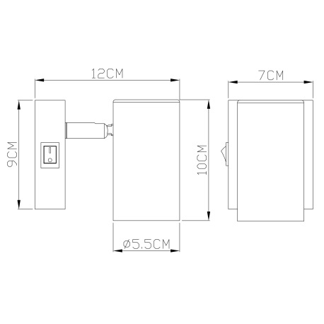Nástenné svietidlo, kov biely, kov chrómový, s vypínačom, ŠxV:70x100mm, H: 120mm, bez žiarovky 1x GU