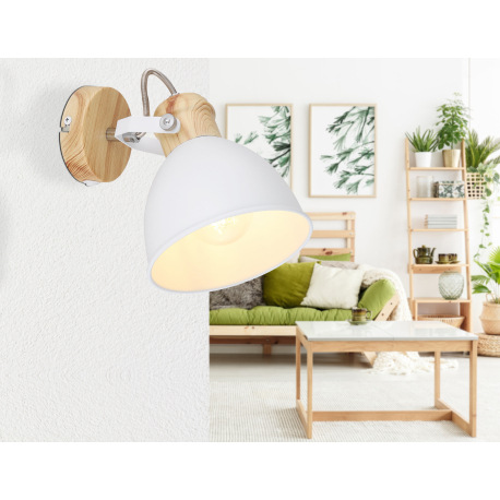 Nástenné svietidlo, kov biely, kov imitácia dreva, vypínač, ŠxV:150x185, H: 180, bez žiarovky 1xE27,