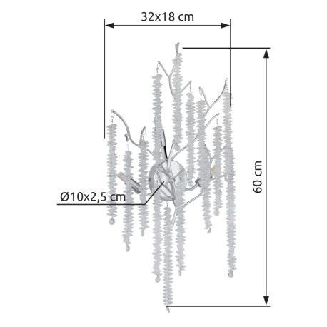 Nástenné svietidlo, kov chróm, pochrómovaný hliník, číre plastové krištále, ŠxV: 320x600mm, H: 180mm