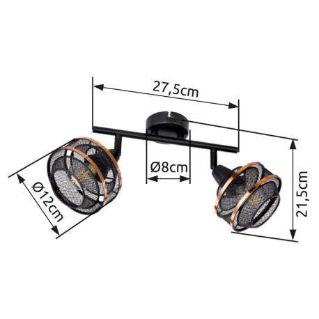 Nástenné svietidlo, kov čierny a zlatý, DxŠxV:275x120x215, bez žiaroviek 2xE14, max. 40W 230V