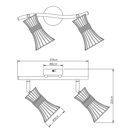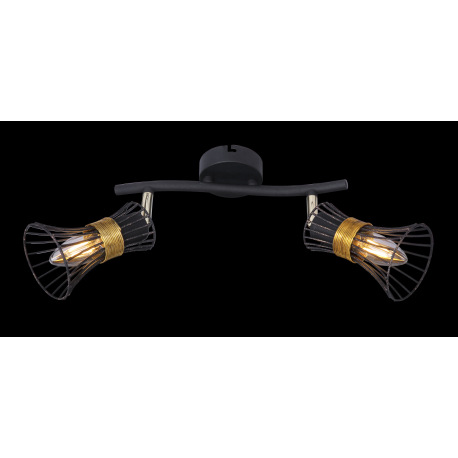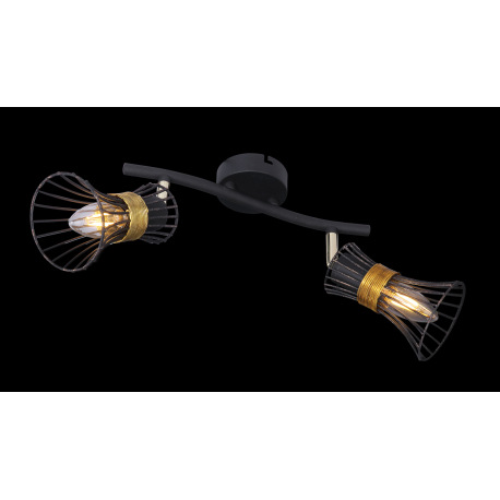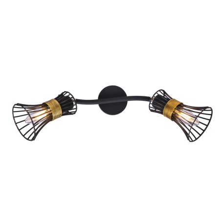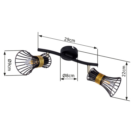 Nástenné svietidlo, kov čierny a zlatý, kovové tyče čierne a zlaté, DxV:290x220, bez žiaroviek 2xE14