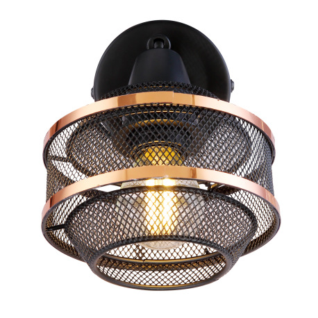 Nástenné svietidlo, kov čierny a zlatý, vypínač, ŠxV:120x155, H:145, bez žiarovky 1xE14, max. 40W 23