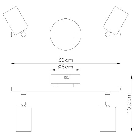 Nástenné svietidlo, kov čierny, bez tienidla, DxŠxV: 300x80x155, bez žiaroviek 2xE27, max. 60W 230V