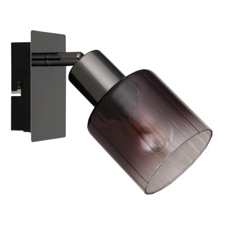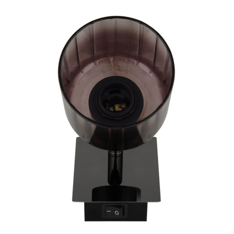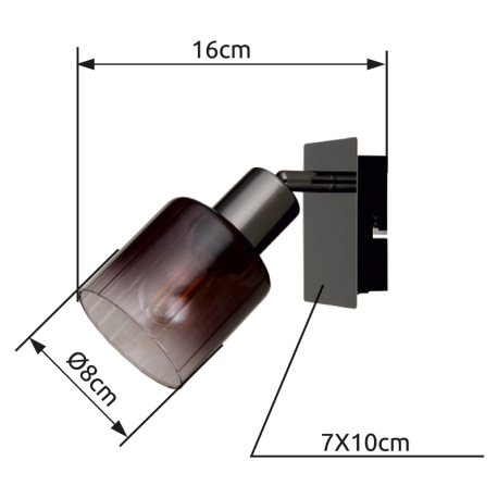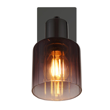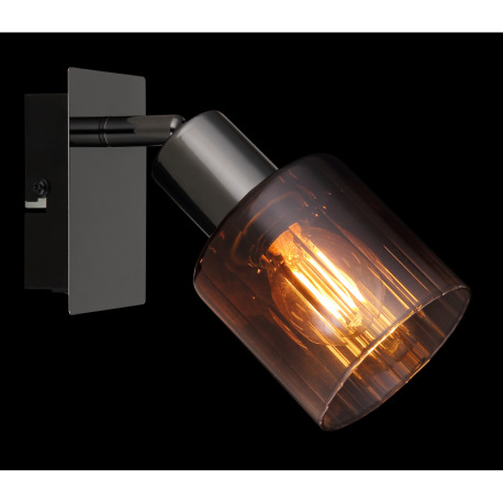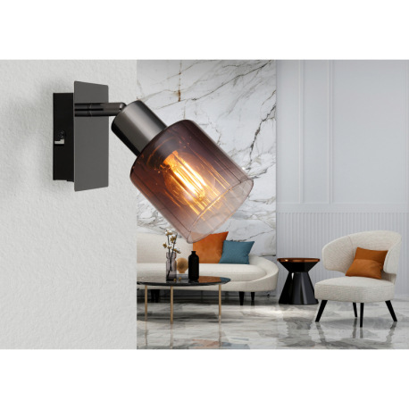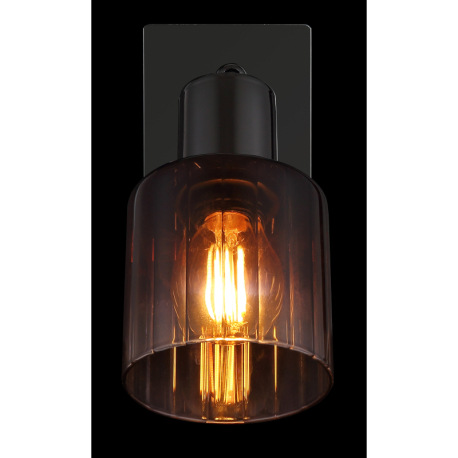Nástenné svietidlo, kov čierny chróm, sklo medenej farby a priehľadné, kolískový spínač na výrobku,