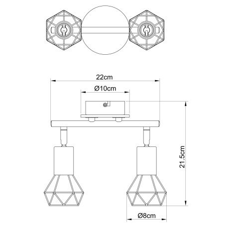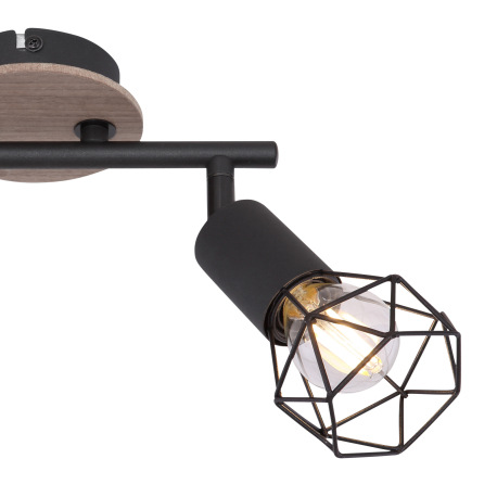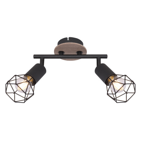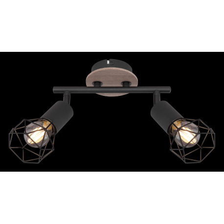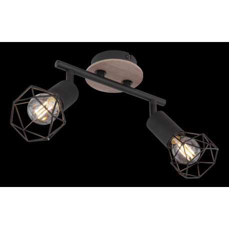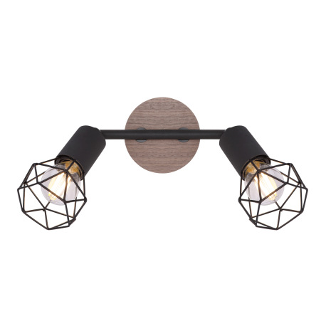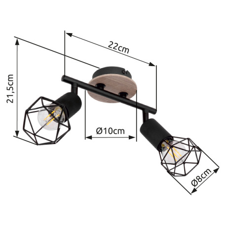 Nástenné svietidlo, kov čierny, drevo hnedé, DxV: 220x215, bez žiaroviek 2xE14, max. 40W 230V