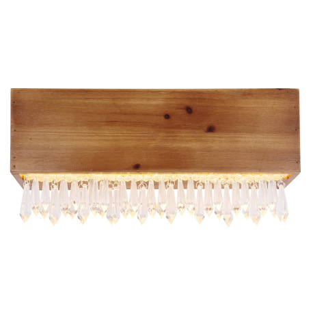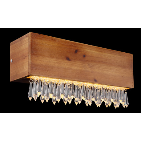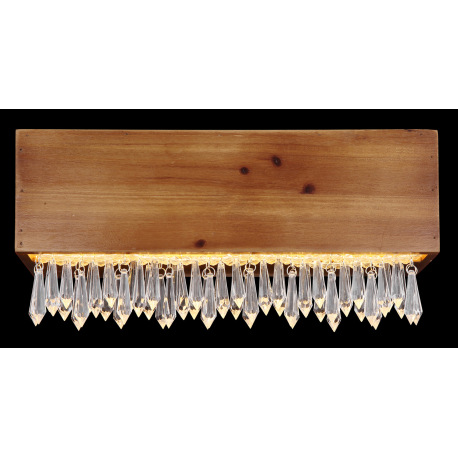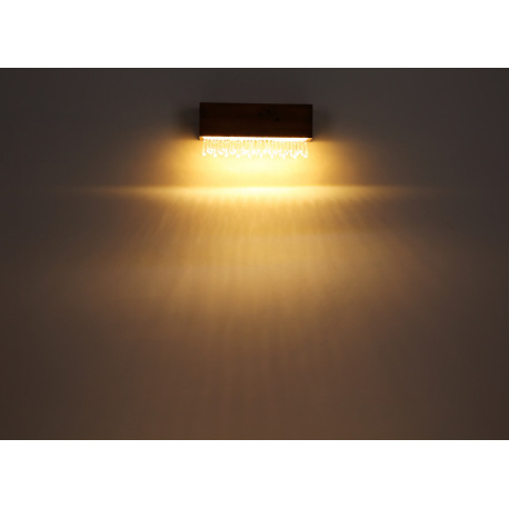 Nástenné svietidlo, kov čierny, drevo hnedé, plast opál, plastové kryštály číre, ŠxV: 370x170, H: 11