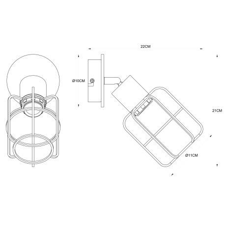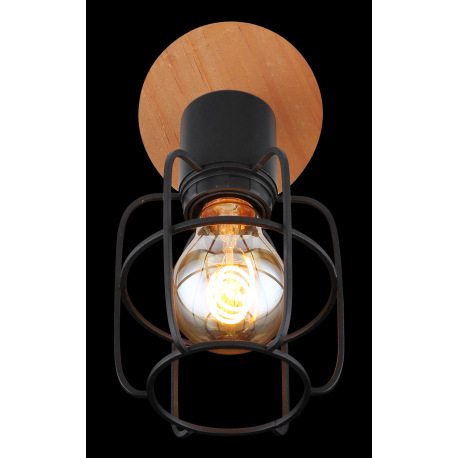 Nástenné svietidlo, kov čierny, drevo hnedé, ŠxV:110x210, H:220, bez žiarovky 1xE27, max. 40W 230V