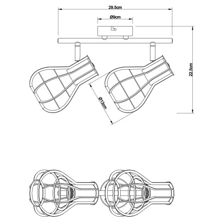 Nástenné svietidlo, kov čierny, DxŠxV: 295x130x225, bez žiaroviek 2xE27, max. 40W 230V