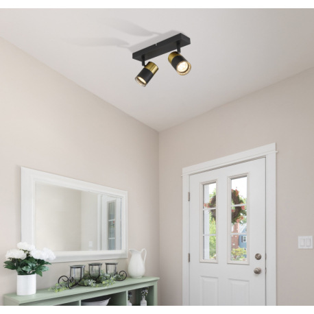 Nástenné svietidlo, kov čierny, hliník medený a čierny, plast dymový, DxŠxV: 260x60x120mm, bez žiaro