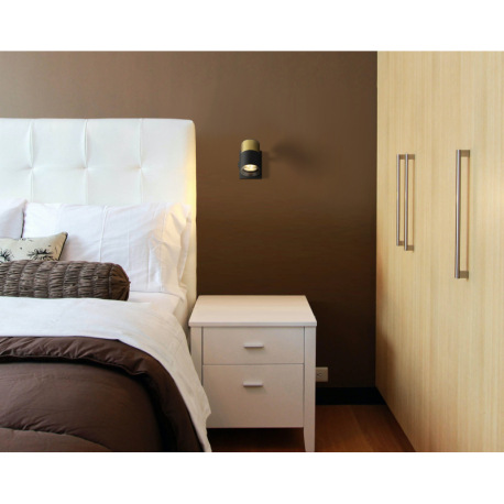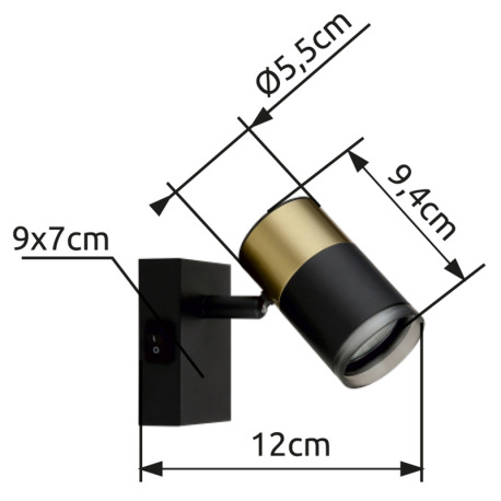 Nástenné svietidlo, kov čierny, hliník medený a čierny, plast dymový, kolískový vypínač, ŠxV: 70x90m