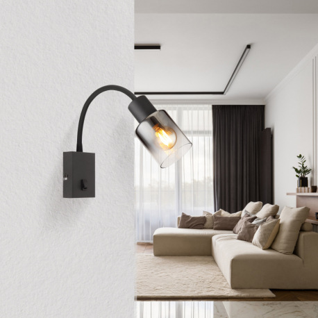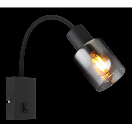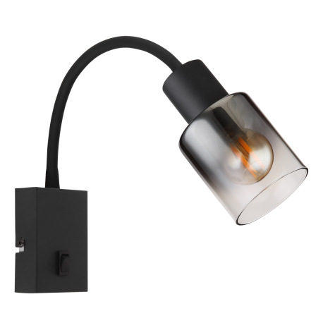 Nástenné svietidlo, kov čierny matný, dymové sklo s prechodom do priehľadného skla, silikón čierny m