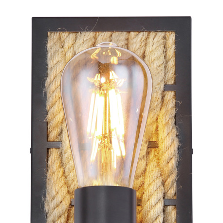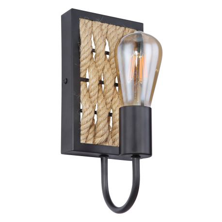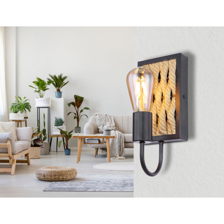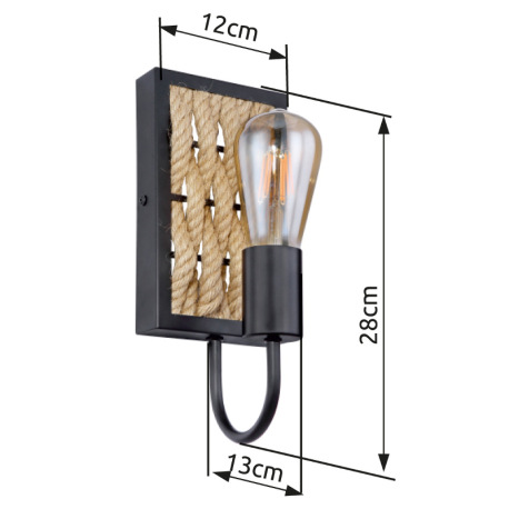 Nástenné svietidlo, kov čierny matný, konopné lano, ŠxV:120x280, H:130, bez žiarovky 1xE27, max. 60W